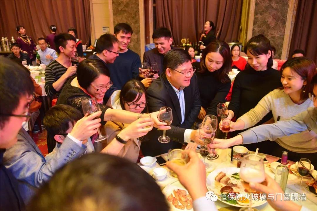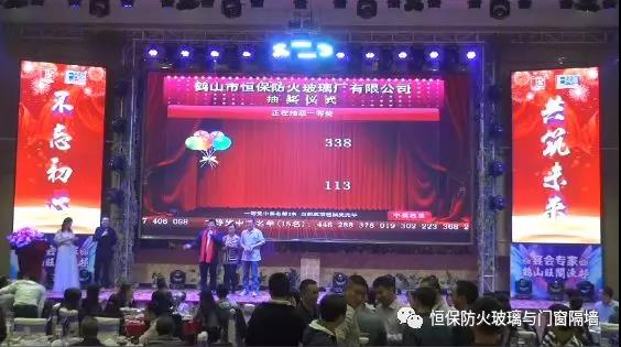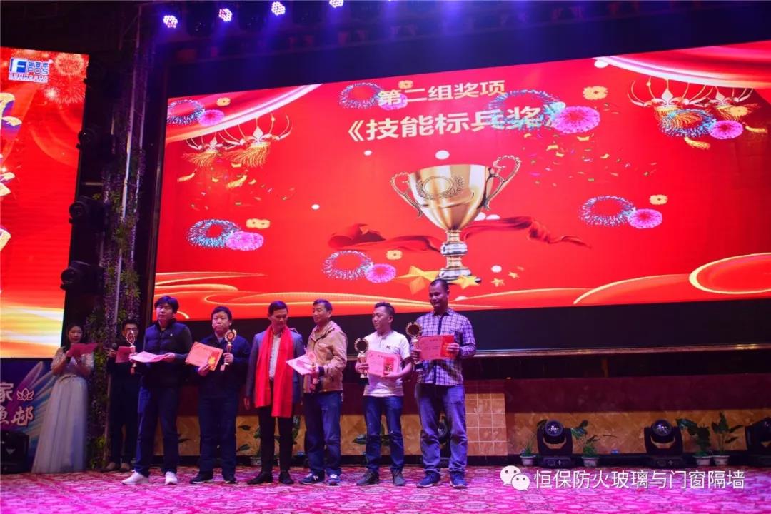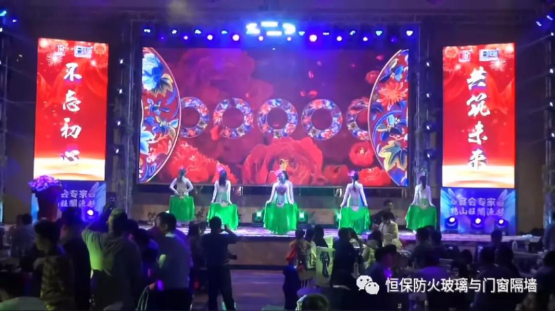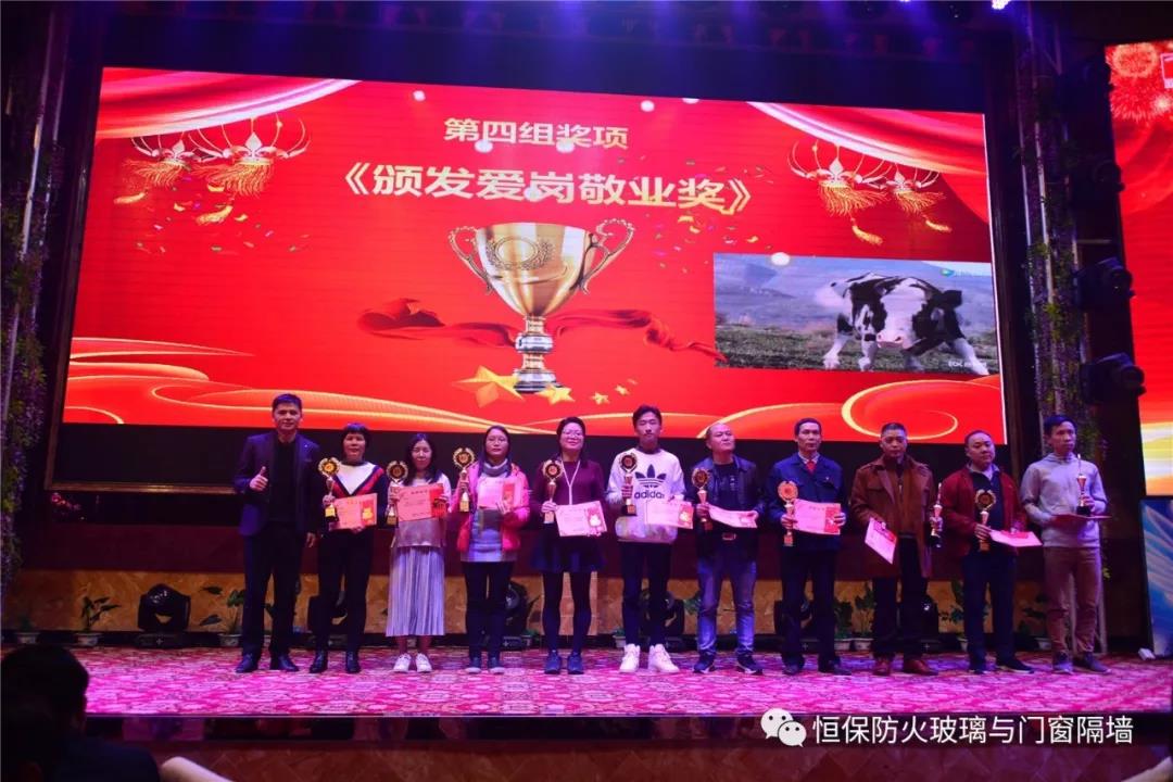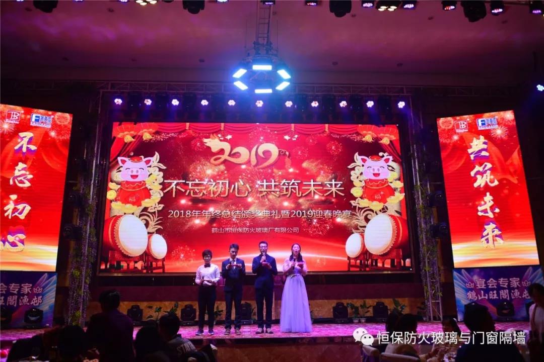 19:30分,恒保年會在鼓舞飛揚中拉開了帷幕,首先是恒保總經理陳沃林先生做年終致辭,陳總回顧了2018年所取得的成績與不足,并提出了2019年恒保要全力以赴,不忘初心,繼續奮斗,再創佳績的戰略方針。2018年是恒保跨越發展的一年。全體恒保家人,團結一心,艱苦奮斗,全力實現了公司既定的年度目標,同比各項重要指標增長逾80%。2018年我們大力引進新設備,開發新產品10多項,產品通過國家檢測20多項 ,至此,恒保出品已擁有37個3C認證,158份檢驗報告,成為行業內公認通過國家檢驗、認證最多的防火玻璃門窗企業;2018年在行業各類權威獎項評比中,榮獲“全國鋁門窗幕墻展 年度星品獎”、榮獲“新玻網 門窗玻璃十強企業”、陳沃林總經理榮獲鶴山市工商聯系統“工匠之星”稱號、陳沃林總經理榮獲第五屆中國玻璃行業“玻璃工匠”稱號、榮獲第三屆建筑門窗金軒獎“最具創新力配套產品”、榮獲第三屆建筑門窗金軒獎“最具發展潛力企業”、榮獲中國門窗幕墻行業“科技進步推動獎”等十多項獎項。2019年我們將持續優化各部門管理,提高員工工作技能、提高生產管理水平、提高生產效率、提高綜合管理能力,減少物料損耗,減少出錯率。加強精密型材、新型防火門窗的開發,滿足不同客戶的需求。2019年恒保上下一心、同心協力、不忘初心,共筑未來,為實現中國平安夢、世界平安夢繼續奮斗!