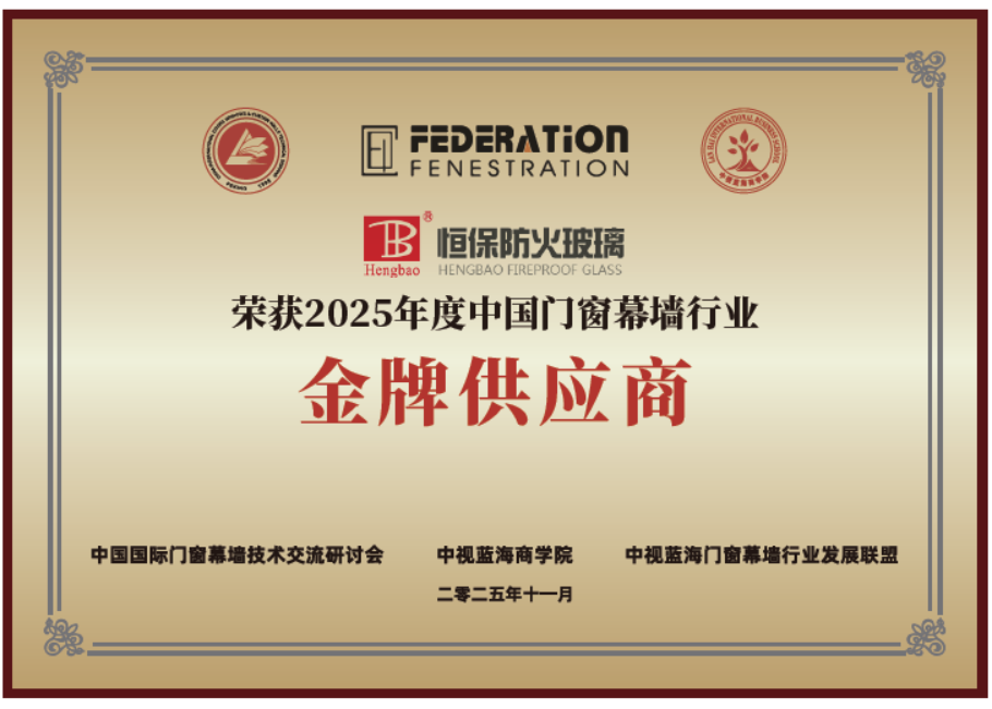 恒保公司深耕防火玻璃及門窗幕墻領域二十多年,始終以秉持“讓每個人都能生活在更安全的建筑空間里” 的使命,以科技創新為核心驅動力,持續推動產品迭代升級,依托高品質服務贏得廣大客戶的深度信賴與行業口碑。這兩項榮譽既是對恒保公司過往技術突破、產品價值與服務品質的高度認可,也是行業對其探索精神、實踐成果及賦能行業發展的充分肯定,深刻印證了恒保公司的創新方向與行業發展需求的同頻共振。
