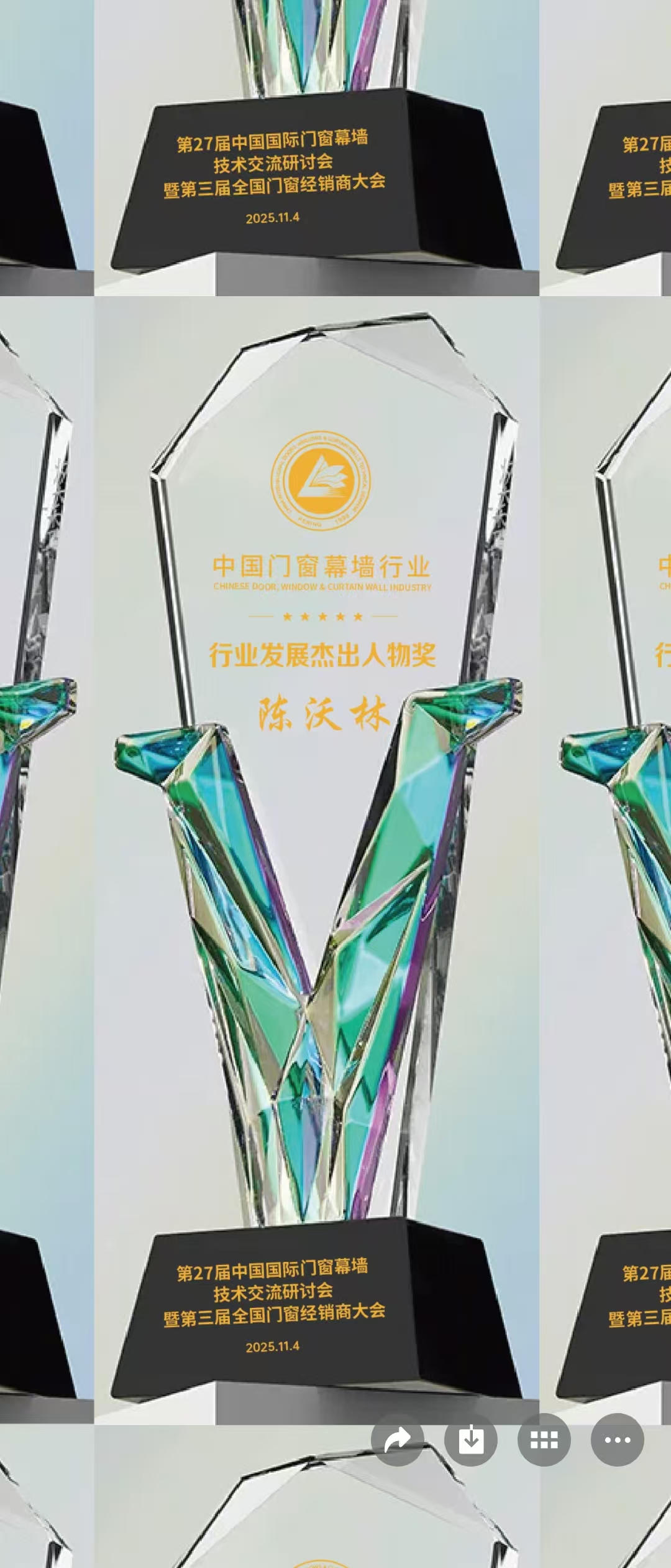 恒保公司董事長陳沃林先生深耕行業二十七載,憑借對門窗幕墻行業的技術革新引領與突出貢獻,被正式授予 “行業發展杰出人物獎” 。這一獎項不僅是對陳沃林先生個人行業成就的高度認可,也是對他帶領恒保公司深耕領域、堅守創新初心的充分肯定,更體現了他在行業內的影響力,為行業同仁樹立了堅守實業、創新致遠的好榜樣。