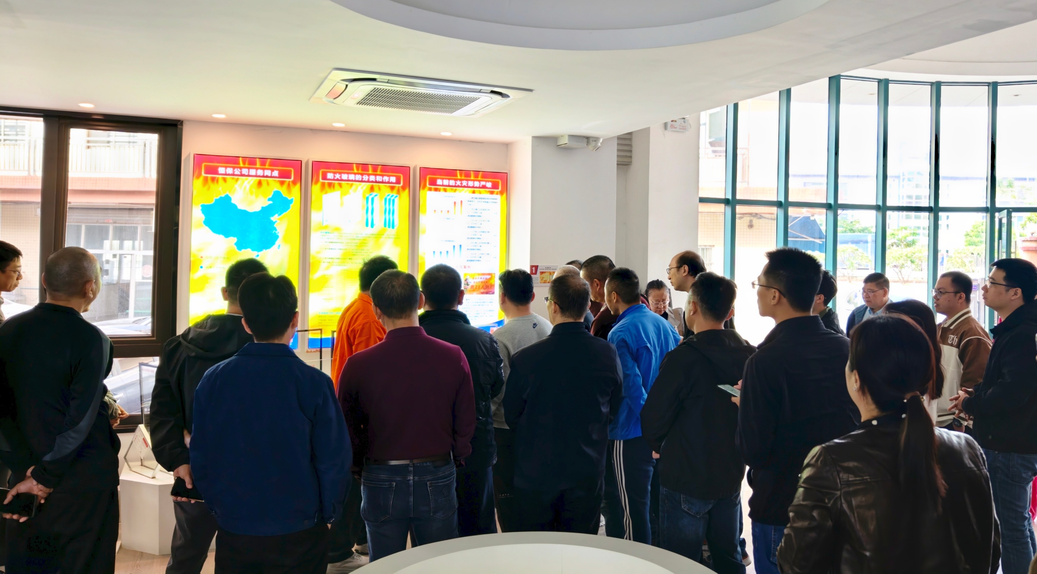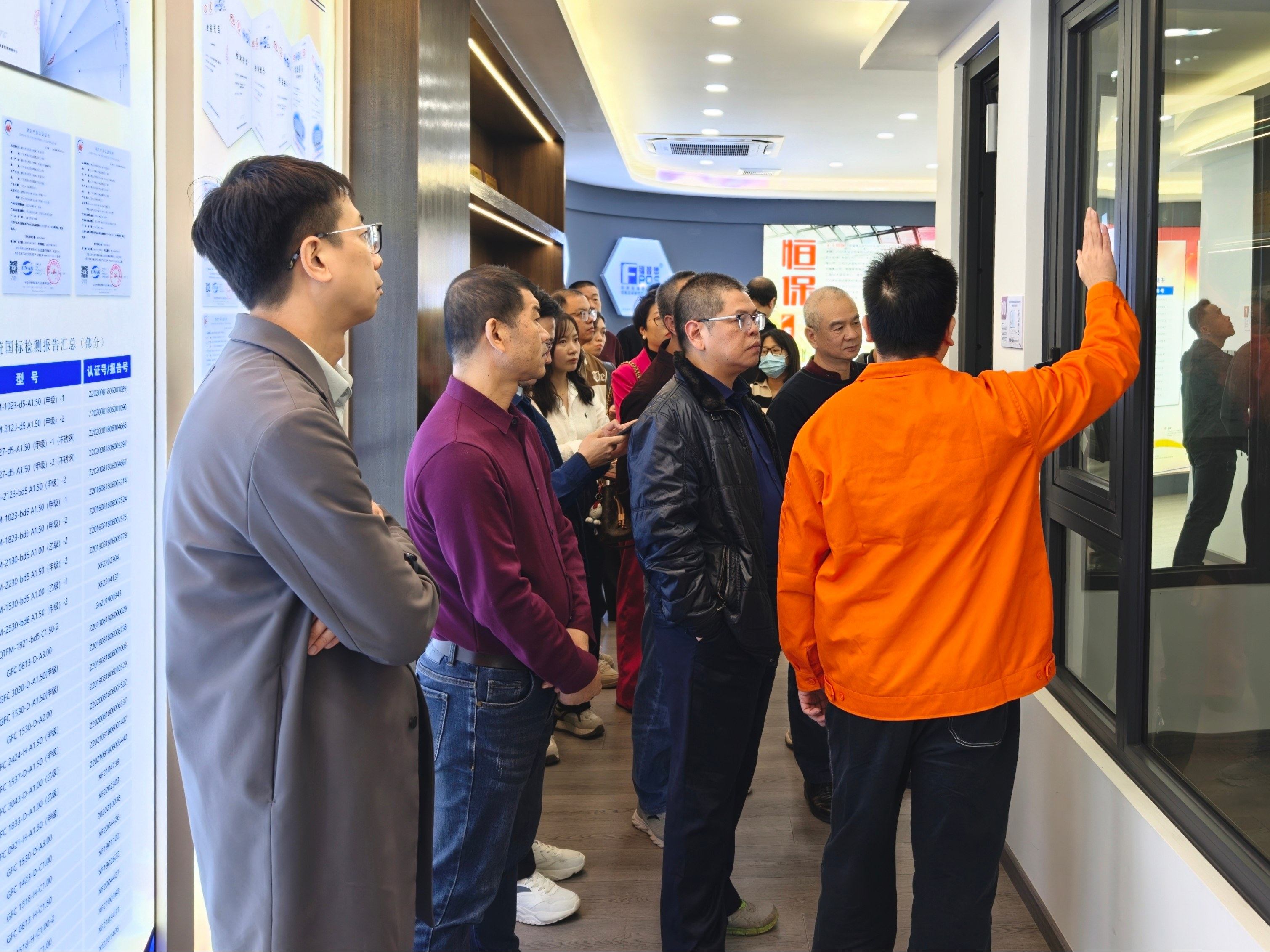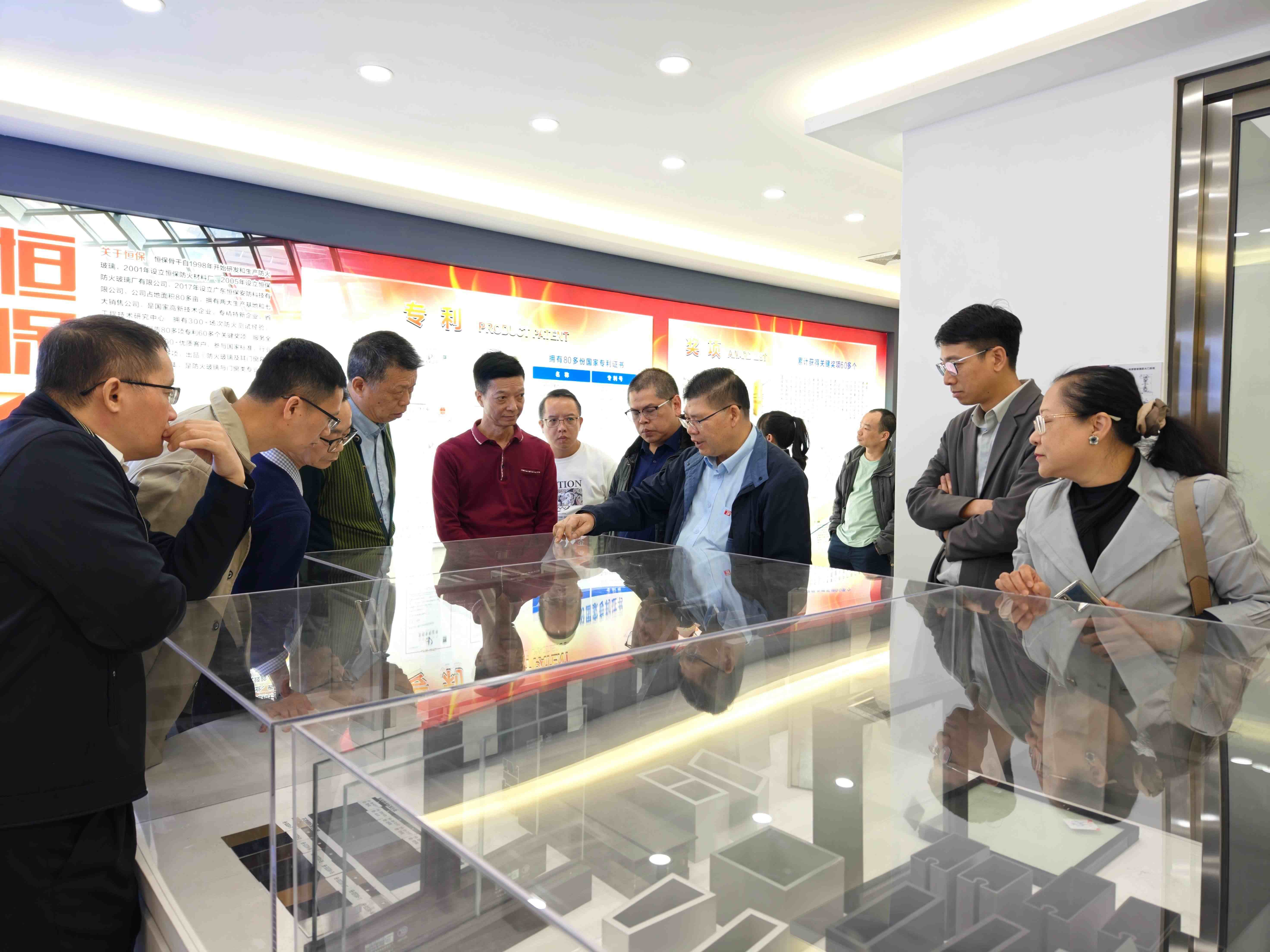 參訪團一行首先參觀恒保展廳,從企業(yè)發(fā)展歷程到各類防火核心產品,全方位展現(xiàn)了公司深耕行業(yè)多年的技術積淀與綜合實力。代表們駐足聆聽,就產品性能參數(shù)、實際應用場景等問題展開熱烈交流,對公司的研發(fā)實力和產品體系給予了認可。